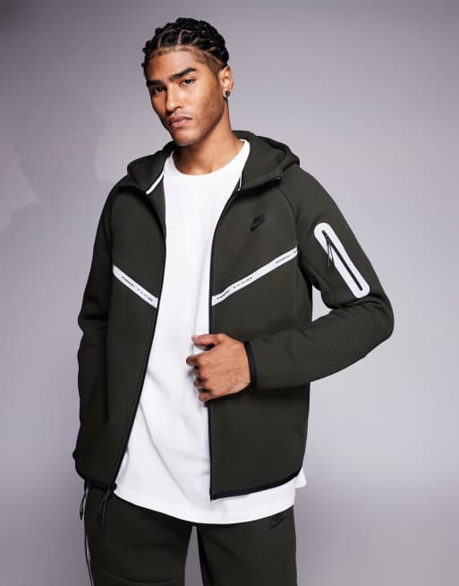 Nike – Tech Fleece – Kapuzenjacke in Dunkelgrün mit reflektierenden Details und Reißverschluss