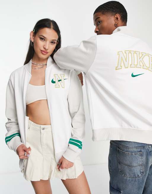 Nike – Unisex – Jacke im Retro-College-Look in Weiß und Grün