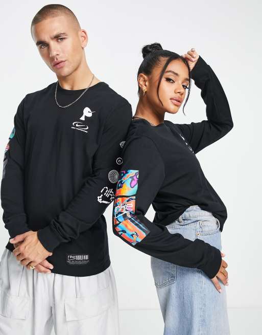 Nike – Unisex – Langärmliges Shirt in Schwarz mit Aufdruck am Ärmel