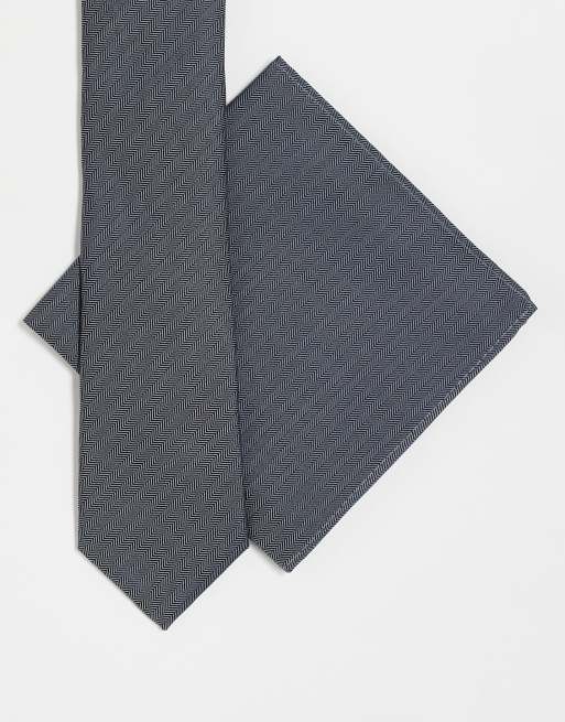 Noak – Schmale Krawatte und Einstecktuch mit Kreuzschraffur in Grau