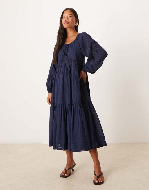Nobody's Child Petite – Adley – Boho-Midikleid in Marineblau