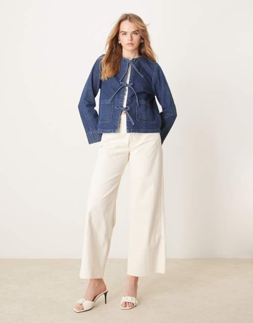 Nobody's Child – Arlington – Jeans-Jacke in Blau mit Bindedetails vorne