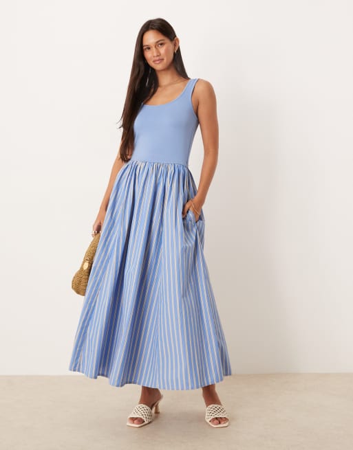 Nobody's Child – Colorado – Midi-Trägerkleid in gestreiftem Blau