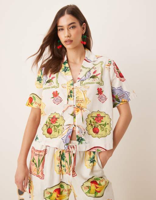 Nobody's Child – Harper – Hemd mit Postkarten-Obstprint und Schnürung, Kombiteil