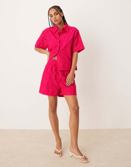 Nobody's Child – Jen – Shorts in Rosa mit Lochstickerei, Kombiteil