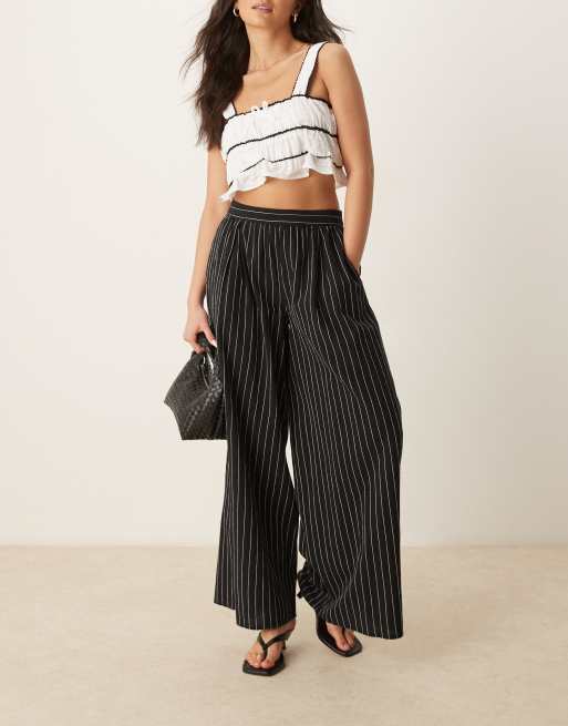 Nobody's Child – Jerrow – Leinenhose in Schwarz mit Streifen und weitem Bein
