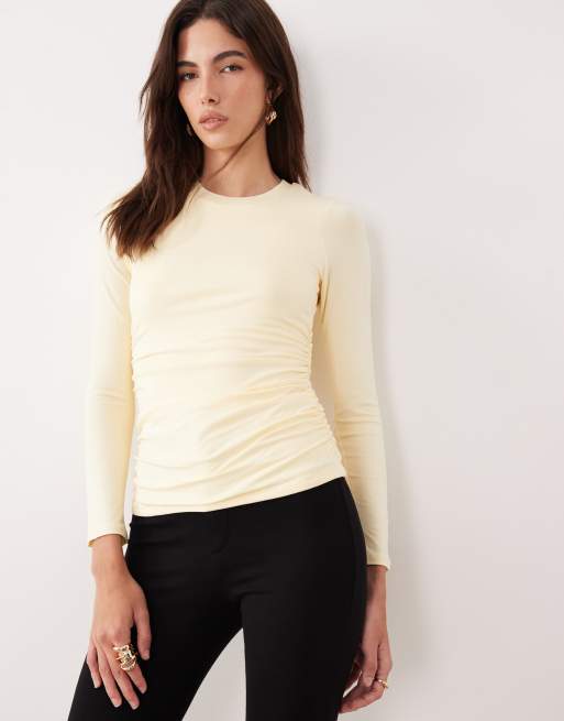 Nobody's Child – Langärmliges Shirt in Cremeweiß mit seitlicher Raffung