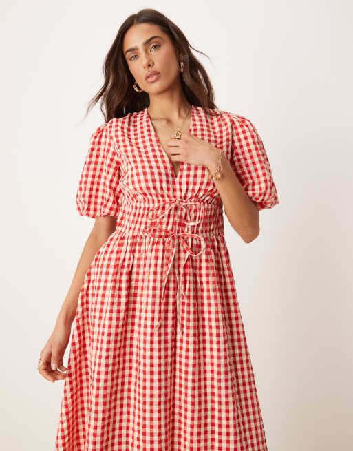 Nobody's Child – Scottie – Midikleid mit Vichy-Karos in Rot und V-Ausschnitt