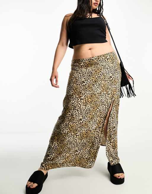 Noisy May Curve – Maxirock mit Seitenschlitz und Leopardenmuster