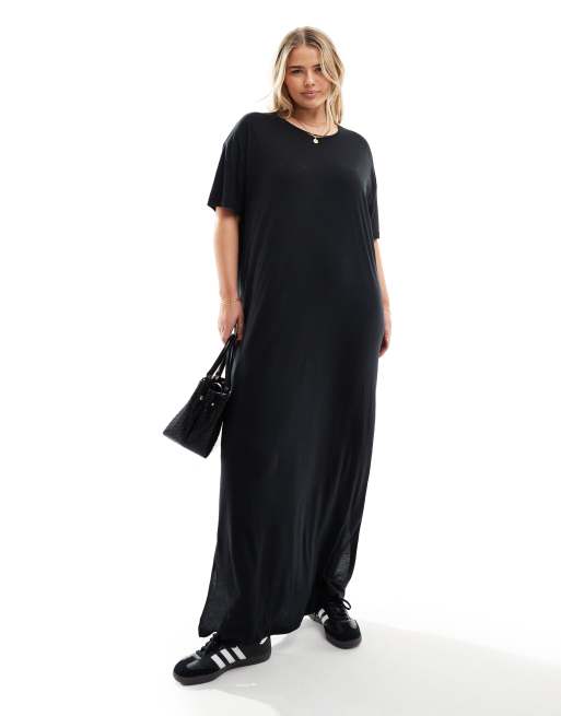 Noisy May Curve – Schwarzes Maxi-T-Shirt-Kleid