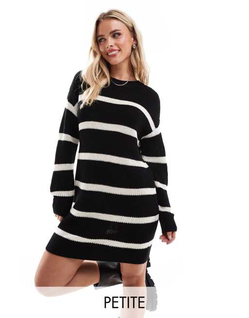 Noisy May Petite – Locker sitzendes Strickkleid in Schwarz mit cremefarbenen Streifen