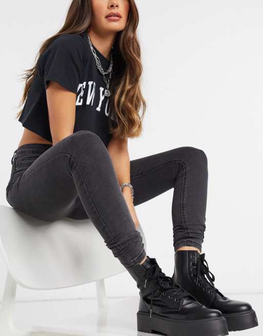 Noisy May – Enge Jeans in Grau mit hoher Taille