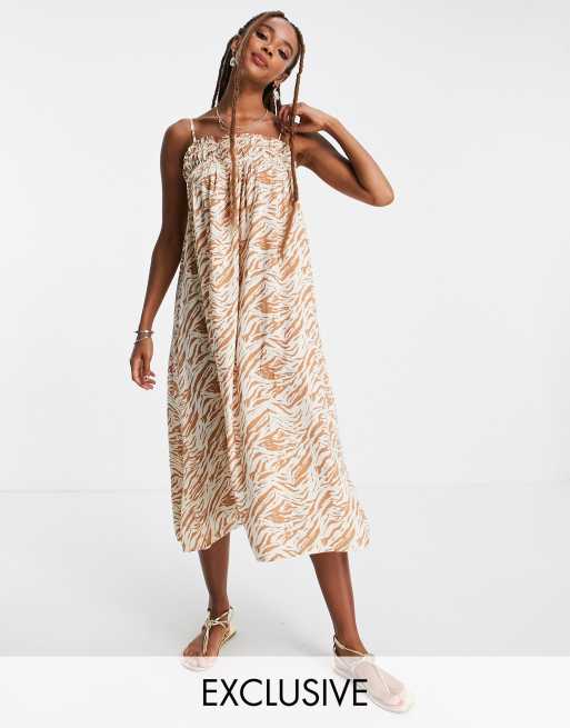 Noisy May – Exklusives Midi-Trägerkleid mit trapezförmigem Schnitt und Zebraprint in Creme