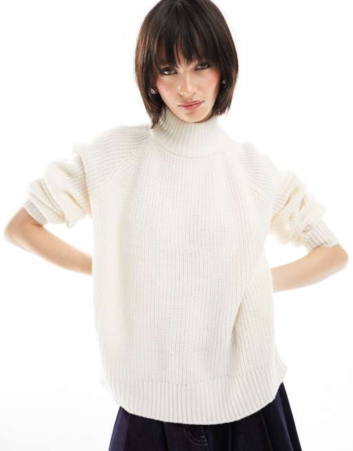 Noisy May – Hochgeschlossener Strickpullover in Creme