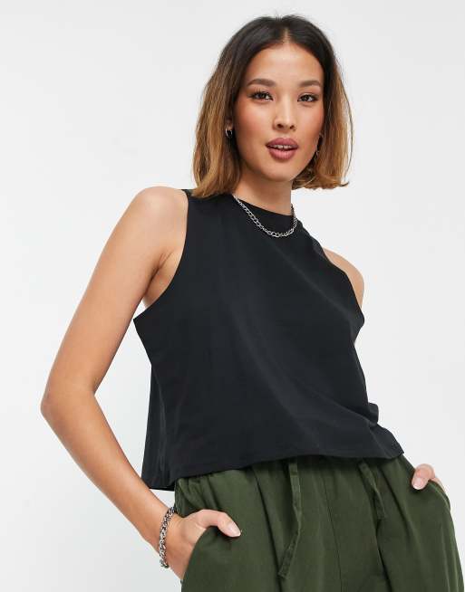 Noisy May – Hochgeschlossenes Trägertop aus Baumwolle in Schwarz mit lockerem Schnitt