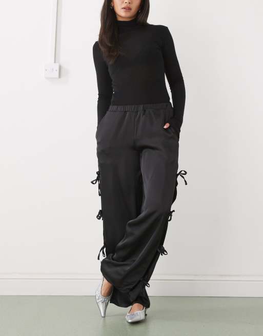Noisy May – Hose aus Satin in Schwarz mit Bindedetail