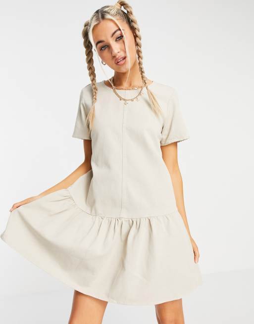 Noisy May – Jeans-Hängerkleid in gebrochenem Weiß mit abfallendem Saum