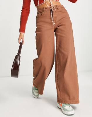 Noisy May – Jeans in Kamelbraun mit weitem Bein