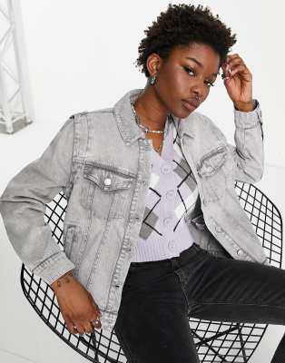 Noisy May – Leonie – Girlfriend-Jeansjacke in Hellgrau