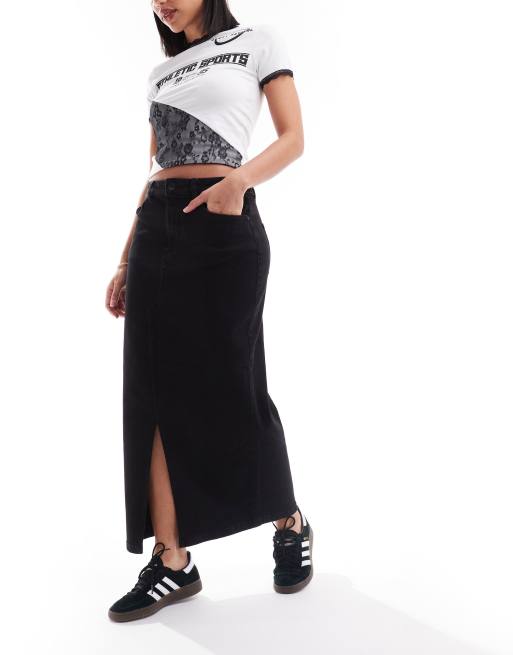 Noisy May – Maxi-Jeansrock in Schwarz mit Schlitz vorne