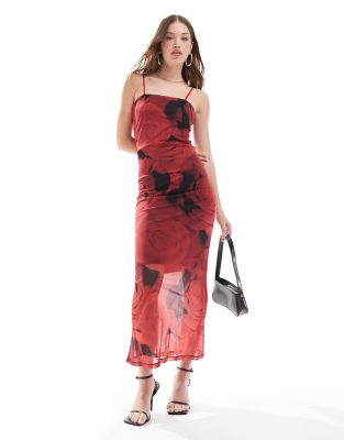 Noisy May – Maxikleid in Rot mit Rosenprint