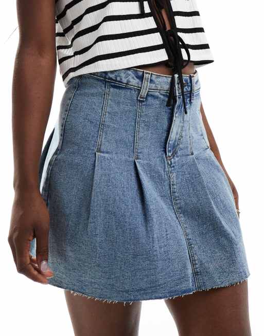 Noisy May – Minirock in mittelblauer Waschung mit Faltendetails
