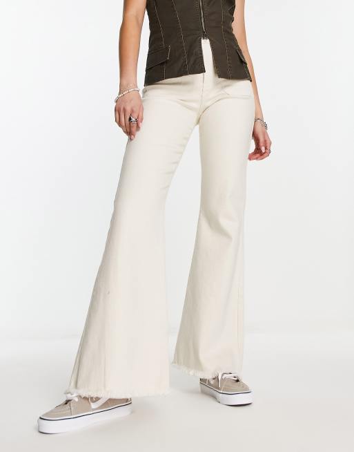 Noisy May – Nat – Jeans in Ecru mit weitem Bein und Taschendetail