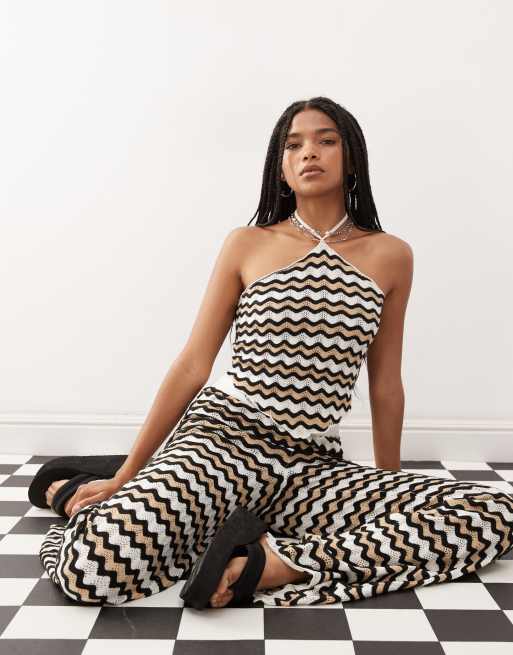 Noisy May – Neckholder-Häkeloberteil in Schwarz und Beige mit Wellenmuster, Kombiteil