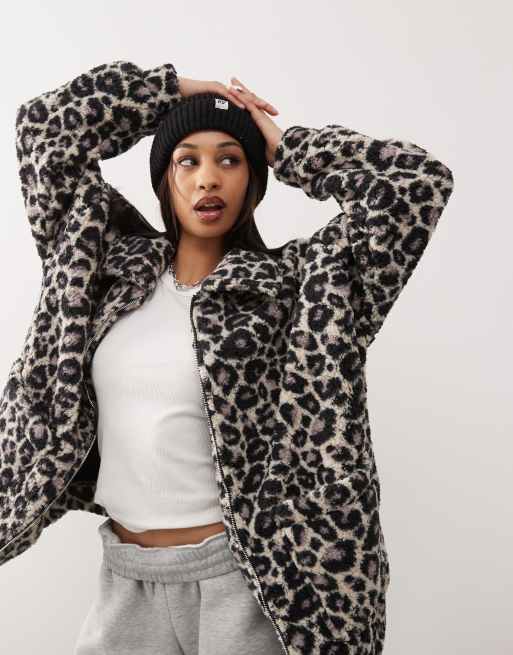Noisy May – Oversize-Fleecejacke mit Leopardenmuster