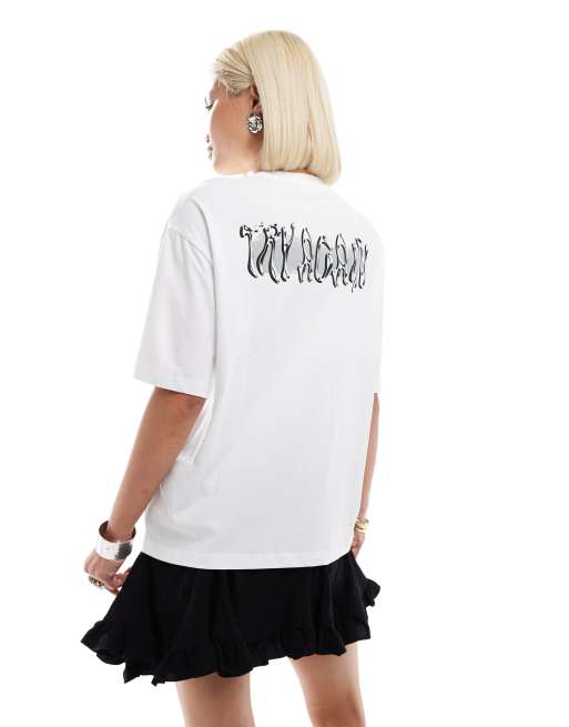 Noisy May – Oversize-T-Shirt in Weiß mit „Whatever“-Textprint