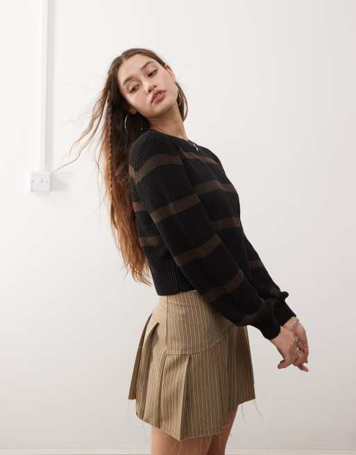 Noisy May – Pullover in Schwarz und Braun mit Rundhalsausschnitt