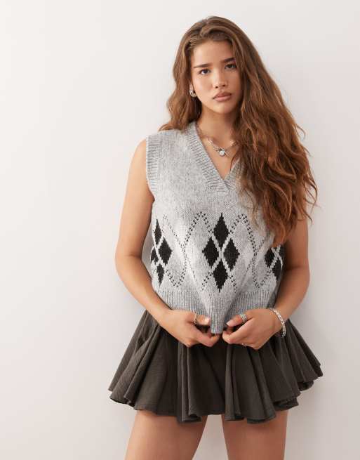 Noisy May – Pullunder in Hellgrau mit V-Ausschnitt und Rautenmuster