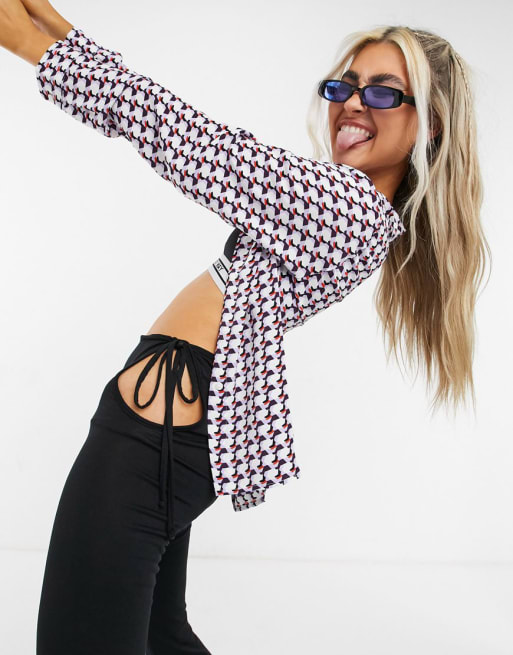 Noisy May – Set mit Hose mit weitem Bein und Hemd in Weiß mit Grafikmuster