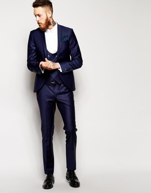 Noose & Monkey – Blauer Anzug in schmaler Passform mit Schalrevers