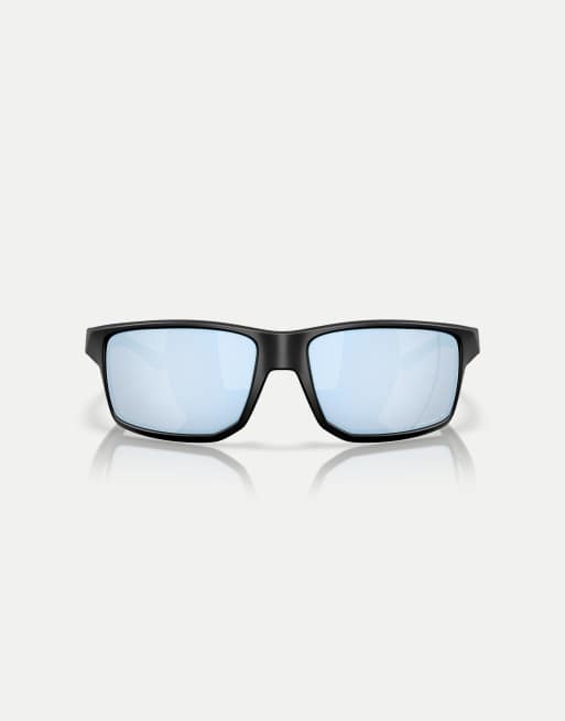 Oakley – Gibston XL – Rechteckige, polarisierte Sonnenbrille in Mattschwarz mit verspiegelten blauen Gläsern