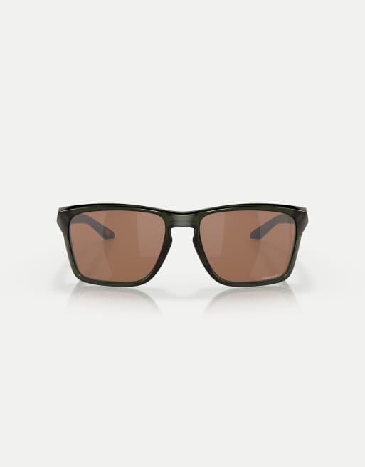 Oakley – Sylas – Rechteckige Sonnenbrille in Tintenoliv mit braun verspiegelten Gläsern