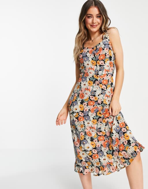 Warehouse – Midikleid mit Rüschenärmeln und buntem Blumenmuster
