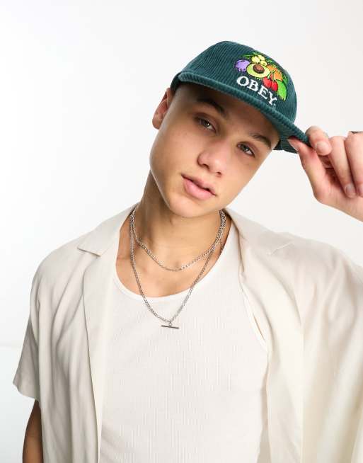 Obey – Cord-Kappe in Grün mit Früchte-Motiv