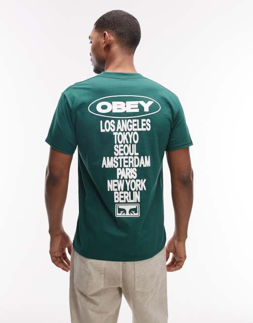 Obey – Global Impact – T-Shirt in Grün mit Rückenprint