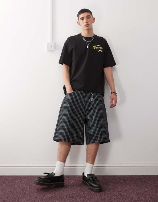 Obey – Karierte, weite Jeansshorts in Schwarz-Bunt