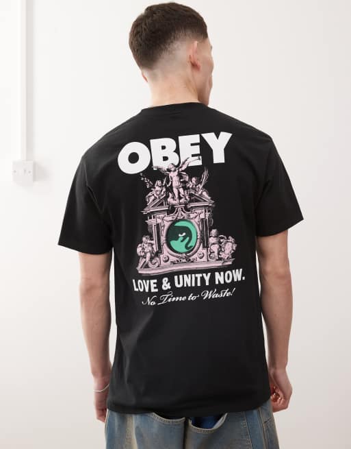 Obey – Love & Unity Now – T-Shirt in Schwarz mit grafischem Logo und Rückenprint