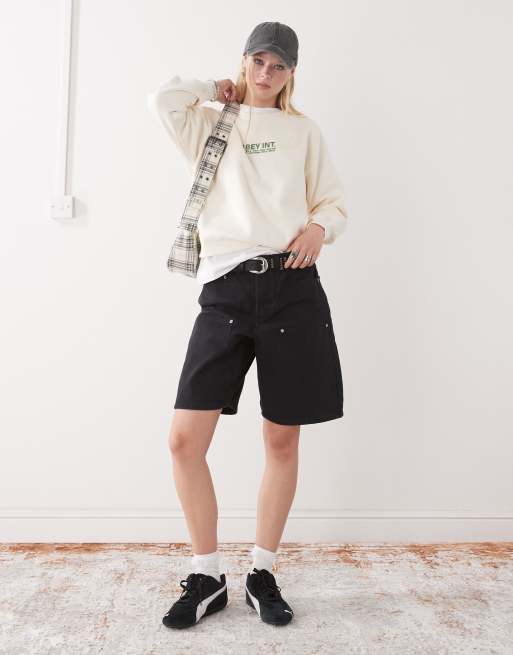 Obey – Shift – Jeans-Jorts in verwaschenem, ausgeblichenem Schwarz mit Bahnendesign