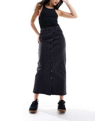 Object – Durchgeknöpfter Maxi-Jeansrock in Schwarz