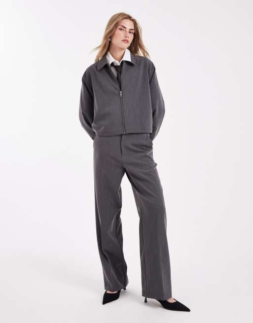 Object – Elegante Hose in meliertem Grau mit weitem Bein, Kombiteil
