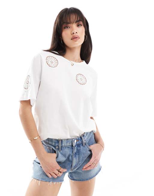 Object – Jersey-T-Shirt in Weiß mit Lochmuster-Detail
