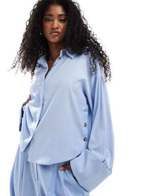 Object – Kastige Hemdbluse in Hellblau mit breiten Manschetten und weiten Ärmeln, Kombiteil