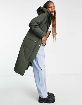 Object Katie – Langer Mantel in Grün mit hohem Kragen