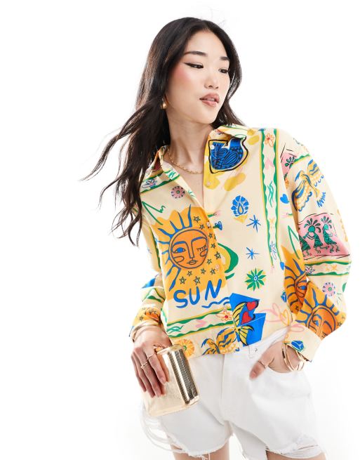 Object – Kurzes, kastiges Hemd mit Gemäldeprint