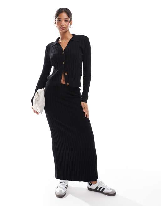 Object – Maxirock aus Rippstrick in Schwarz, Kombiteil