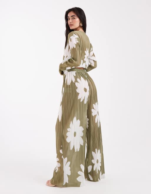 Object – Plissiertes Set aus Oberteil und Hose, in Olivgrün mit Blumenmuster